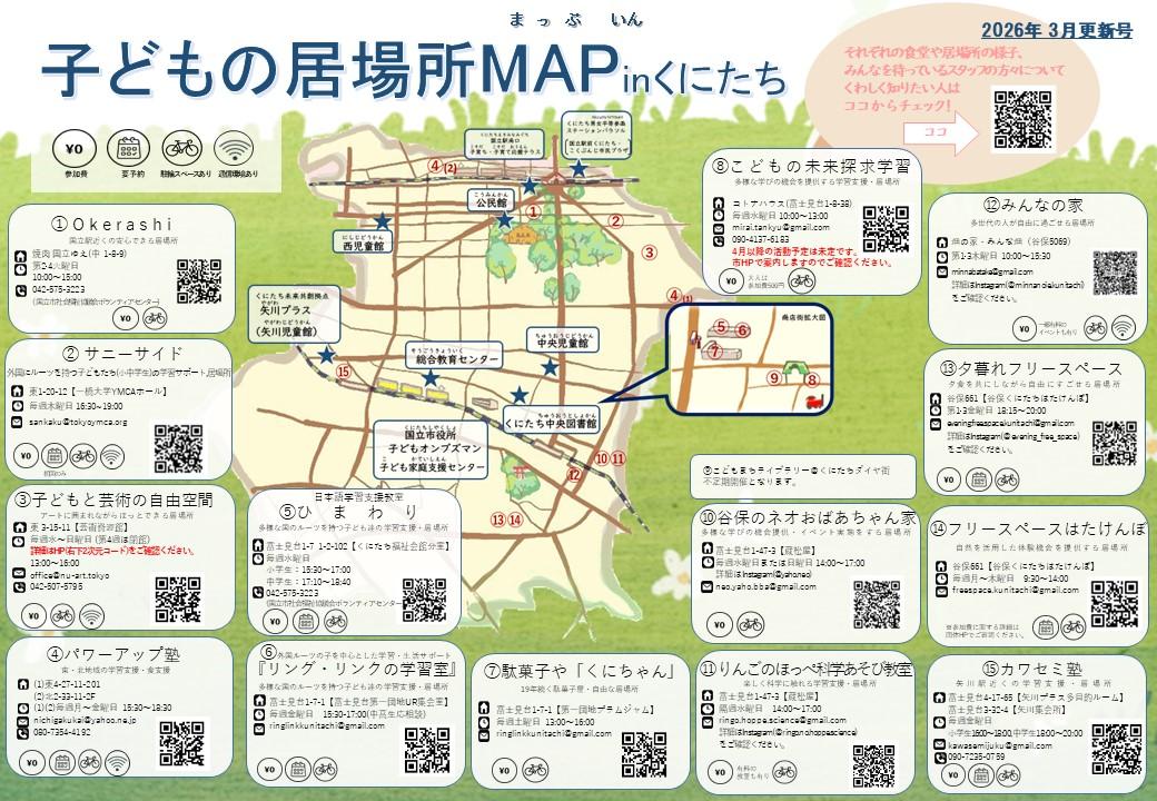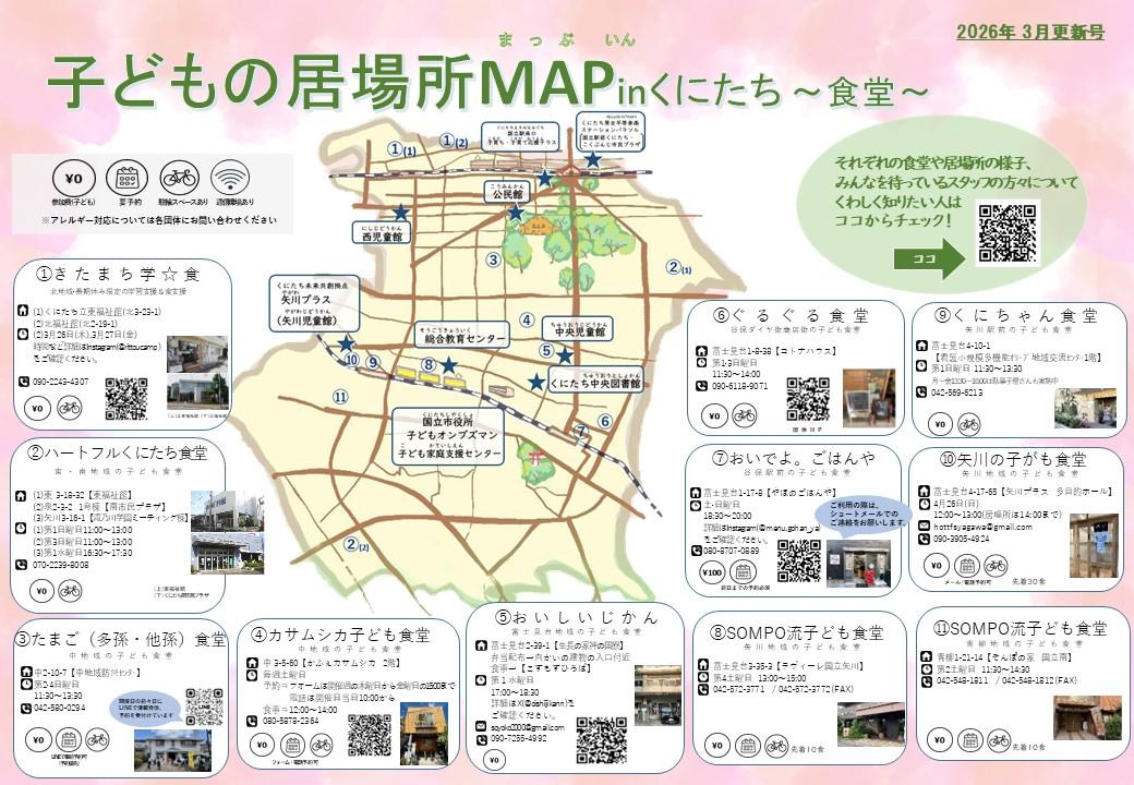 市内の子ども食堂・子どもの自由な居場所について掲載した「子どもの居場所MAP in くにたち 2026年3月更新号」を発行しました!