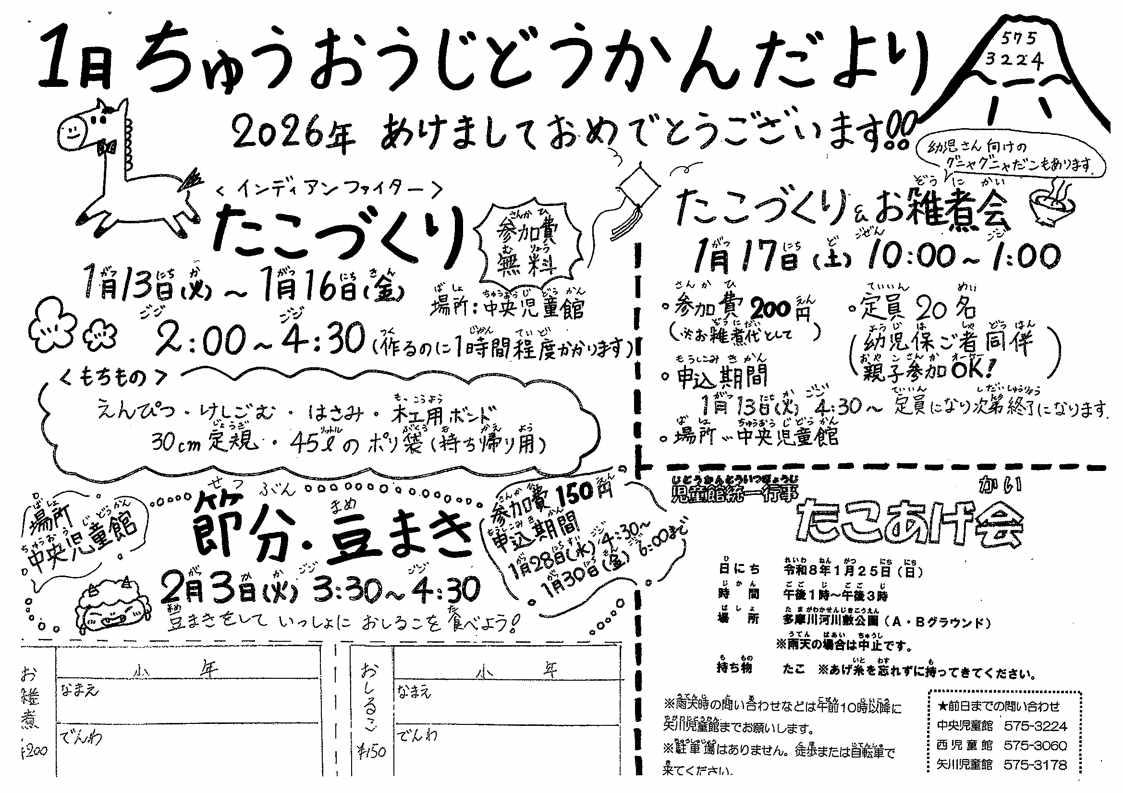 ・中央児童館だより詳細はこちら・矢川児童館だより詳細はこちら・西児童館だより詳細はこちら