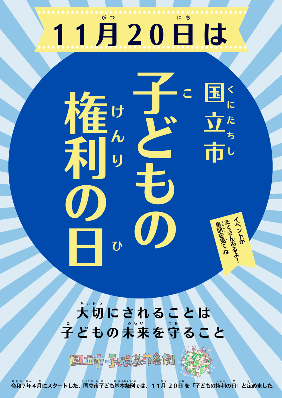令和7年度にスタートした、国立市子ども基本条例では、11月20日を「国立市子どもの権利の日」と定めました。